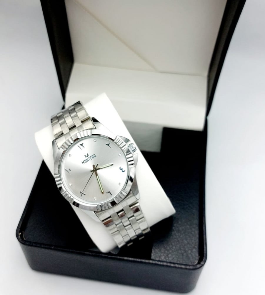 ساعة رجالية بالون الفضي مينا ء ابيض