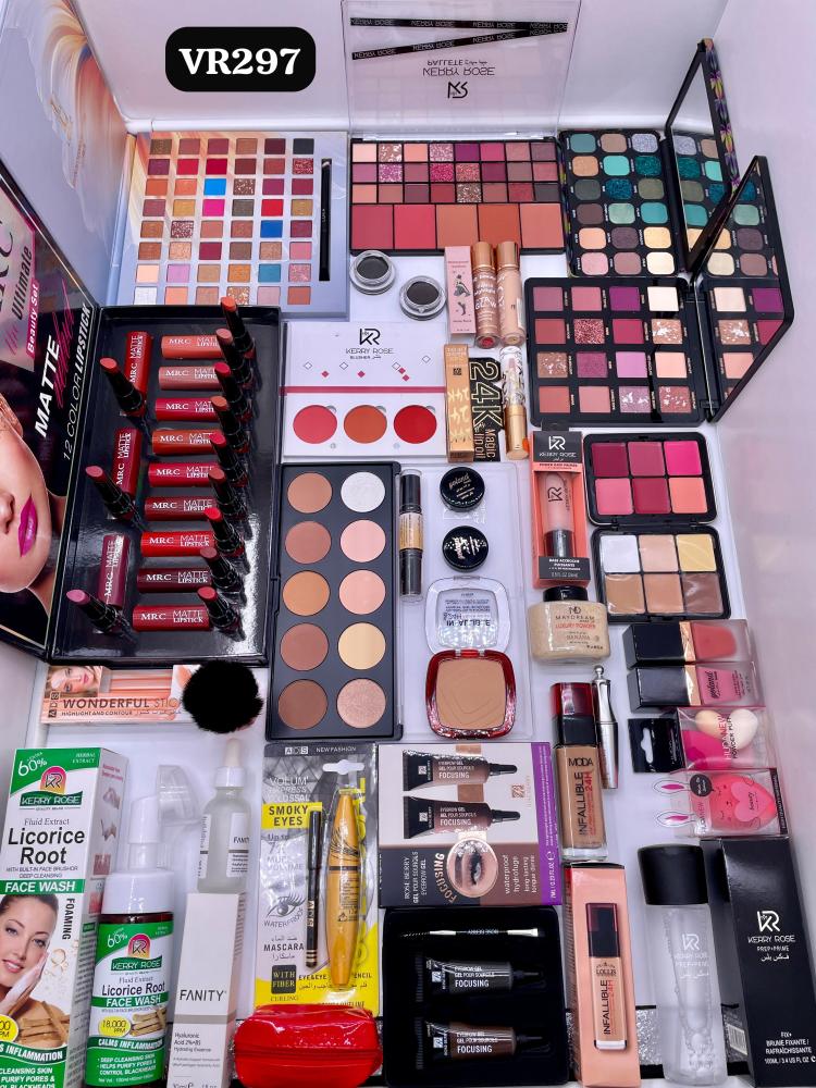 - بكج مكياج كامل بتشكيلة متنوعة تضم أرواج كريمية وظلال عيون متعددة الألوان.