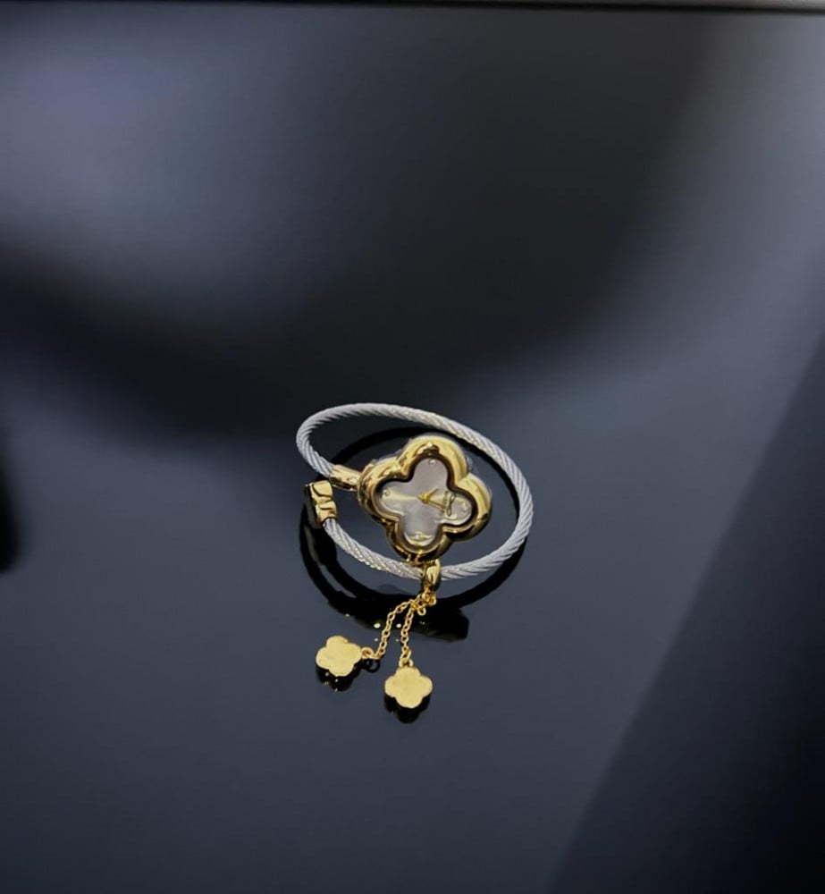 - تأتي هذه الساعة بإطار من الفولاذ المقاوم للصدأ الفاخر ، مع وجود تفاصيل مطلية بالذهب تضيف لمسة من الفخامة والجمال.