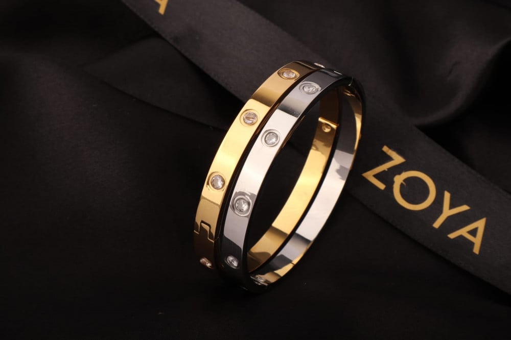 طقم اكسسوار فخم اسوارتين استنال استيل بفصوص زركون