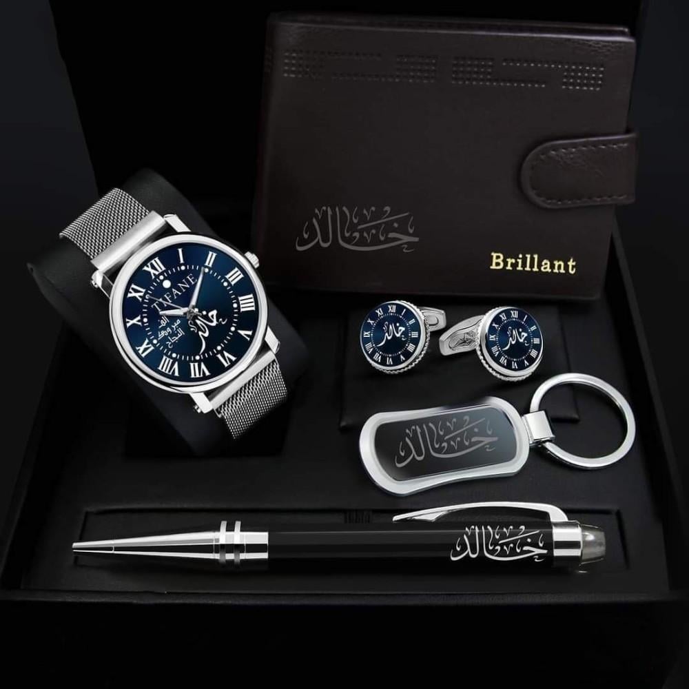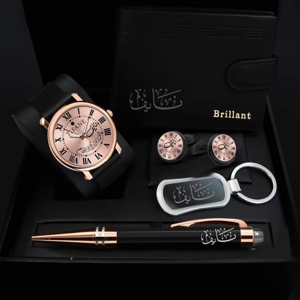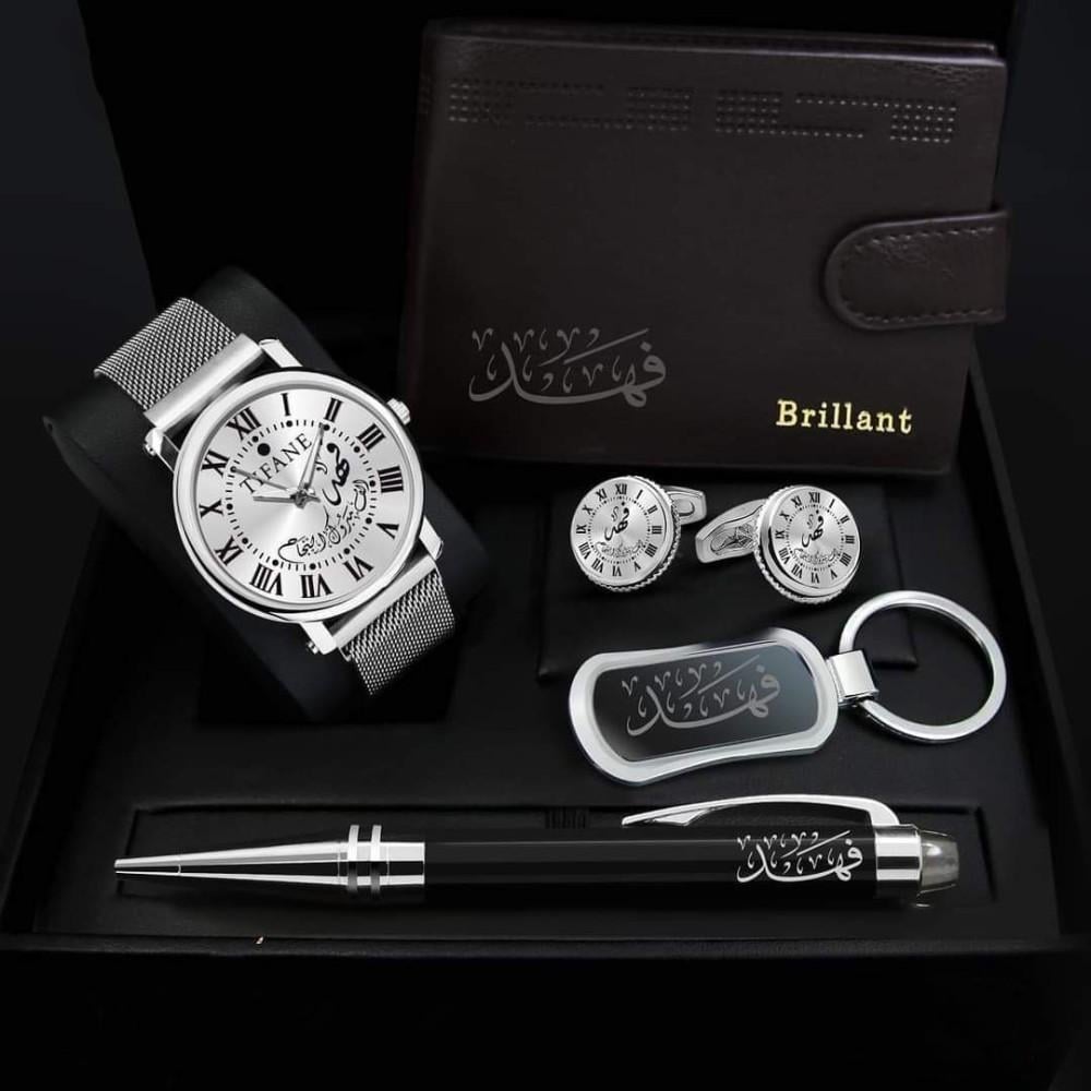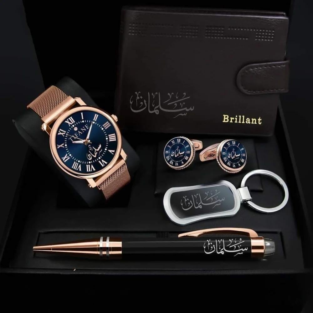 هدايا طقم رجالي ساعة رجالي مغناطيس تصميم الاسم حسب الطلبضمان سنه يشمل الضمان ماء + الخلل الفني ▪ قلم نحت الأسم باليزر حسب الطلب▪ كبك تصميم الاسم حسب الطلبمحفظة بطاقات بالاسم نحت ليزر ميداليه بالاسم نحت ليزرعلبه طقم كيس هدايا