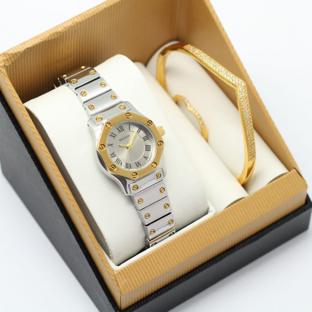 - تتكون هذه الأطقم من ساعة فاخرة والتي تتميز بآلية دقيقة ومظهر معدني أنيق.