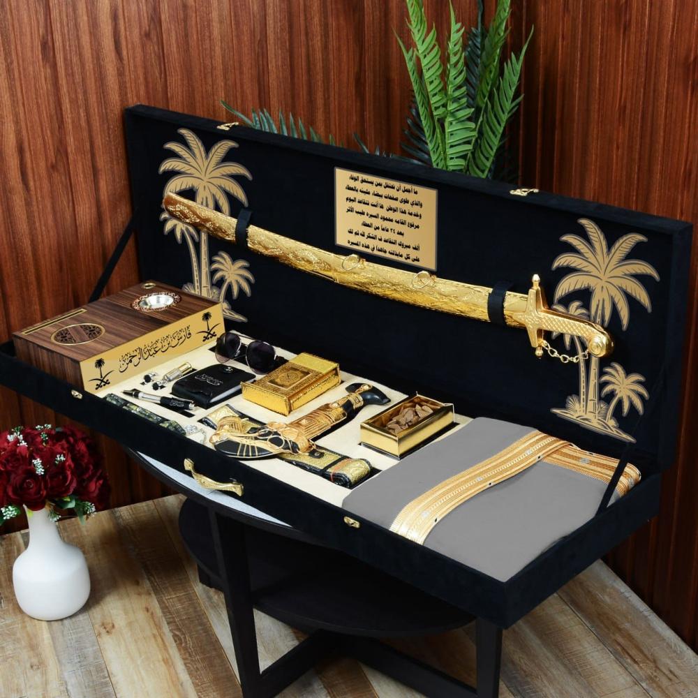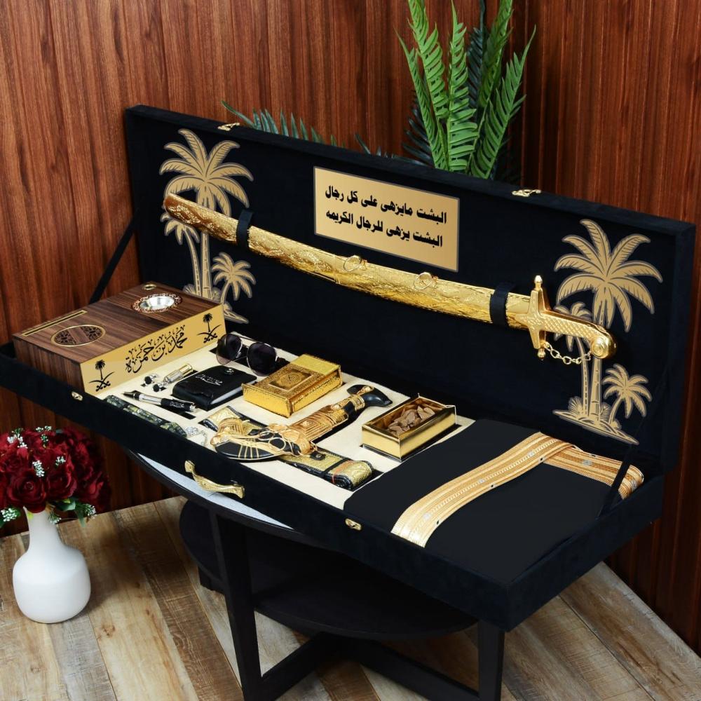 🎁 بوكس اسود ملكي مع تصميم عبارة ونخلتين من الاكريلك نفس الصوره