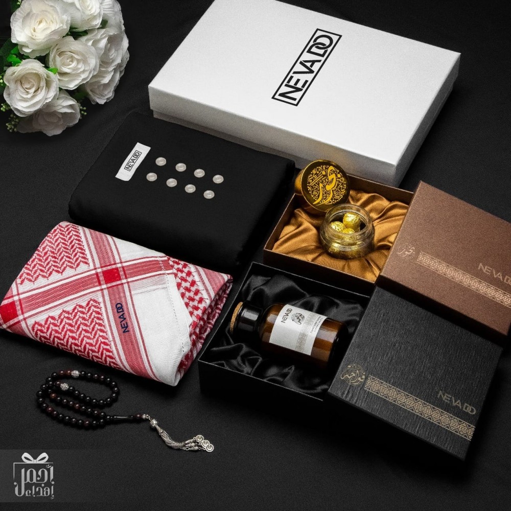 - المحتويات: ( شماغNEVADO قطن عالي الجودة مقاسات 55\58\60 - قماش NEVADO صيفي الألوان الأكثر مبيعًا - 8 أزرار NEVADO مع لوقو الماركة للرقبه والجيب - بخورNEVADO - فواحهNEVADO ريحة الورد - علبة الماركة - كيس الماركة ).