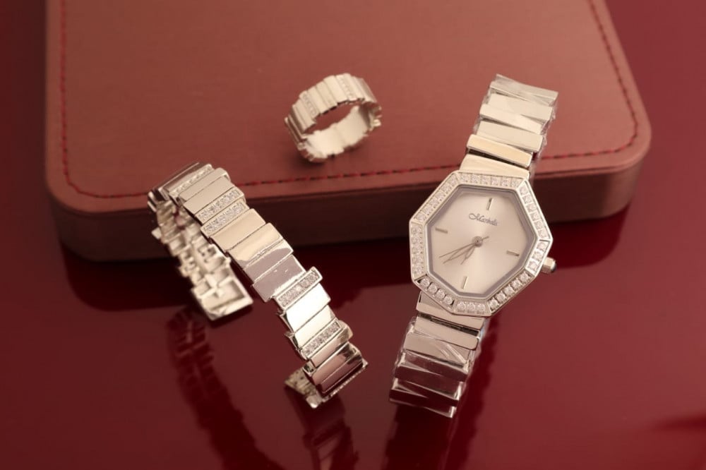 == إسوارة مع خاتم استيل فصوص زيركون .