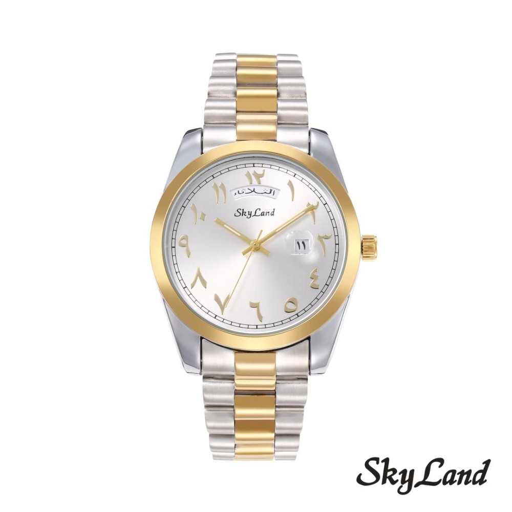 ساعة رجالية استيل فضي ذهبي الميناء سلفر
