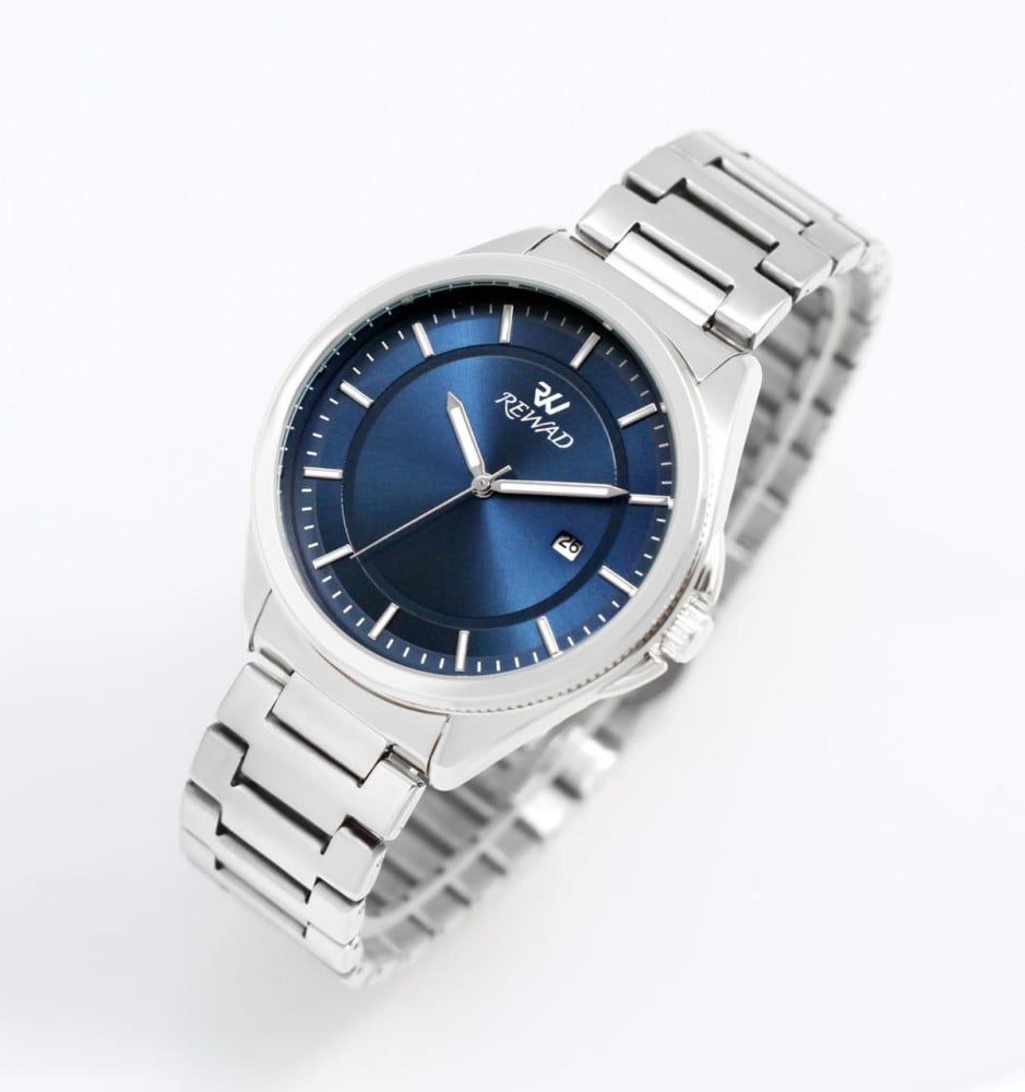 تجسد ساعه لون فضي الرجالية العصريّة تميزًا غير عادي حيث تلتقي الفخامة بالحداثة في تصميم رائع مع إطار فضي لامع وميناء أزرق نابض بالحياة، تقدم الساعة تجربة فريدة تجمع بين الأناقة والتميز، تصميمها الدائري يعزز من جاذبيتها لتكون خيارك المثالي لإضافة لمسة من الرقي إلى إطلالتك.